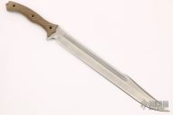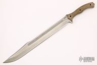 This F-16 by Busse features a Competition finished blade with fullers, .215" blade stock and 1.804" blade depth, full tang construction. The handle has natural canvas micarta scales. Excellent condition. Comes with a zippered case.