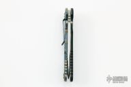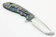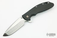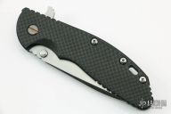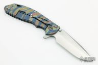 This Custom XM-24 Spanto from Rick Hinderer Knives features a satin finished spanto ground blade with notched thumbrest and flipper. The handle has a carbon fiber scale with a bead blasted and anodized titanium frame, matching clip can be mounted for tip up or down carry. Blade is centered when closed, locks up with no play. Excellent condition. Comes with original box.