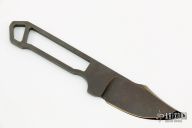 This Survival Shawty by Jeremy Horton features a tumbled finished chisel ground blade with swedge and platinum tip, .220" blade stock and 1.240" blade depth. The handle is comprised of skeletonized integral construction. Stamped with the the Horton Shield on the Picasso and "Not for resale". Excellent condition.