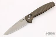 This 781 Anthem by Benchmade features a tumble finished drop point blade with dual thumbstuds. The handle is comprised of a machined and integrally constructed frame with axis lock and matching reversible tip up clip. Excellent condition.