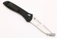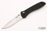 This Benchmade 710 McHenry has an D2 stonewashed drop point blade with dual thumb studs. Handle is black G10 with milled ribs, and black stainless steel tip up clip. Comes with original box and papers. Has heavy scratches on the blade has been resharpened. Good condition.