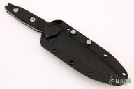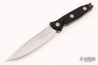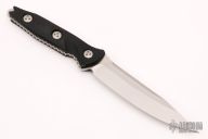 This Socom Alpha by Microtech Knives features a stonewash finished blade with notched thumbrest. .164" blade stock and 1.12" blade depth, full tang construction. The handle has black G-10 scales. The tang is notched all around and there is a lanyard hole at the butt. Comes with a kydex sheath, original box and papers.  Dated 10/2021. S/N 2132. Excellent condition.