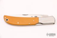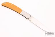 This Eagle by Al Mar features a satin finished blade with nail nick. The handle has stainless steel bolsters, ivory paper micarta scales with a stainless steel backspacer. Comes with original box and nylon sheath. Has some light scratches, otherwise excellent condition.