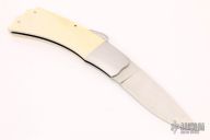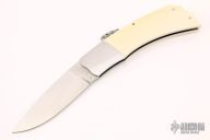 This lockback by Lorenzo Hendricks features a hand rub satin finished blade. The handle has dovetailed nickel silver bolsters, mammoth ivory scales, stainless steel liners and backspacer. Has a few scratches, otherwise excellent condition.