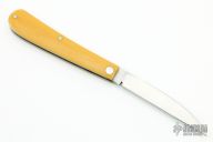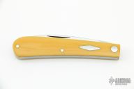 This Swayback by JH Lloyd features a satin finished wharncliffe blade with nail nick. The handle has micarta covers with stainless steel escutcheon, liners and spring. Has half-stop, flush in all positions. Comes with zippered case. Has a couple light scratches, otherwise excellent condition.