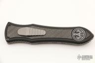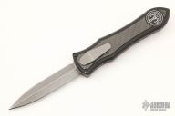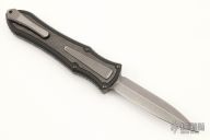 This knife is a Deadlock Model C by Grant and Gavin Hawk. It has a double-edged stonewashed blade. The handle has a carbon fiber and black aluminum frame with a tip down spring clip, titanium. The thumb slide on the handle is also titanium and handle has titanium overlays. Comes with a cloth pouch. Grant and Gavin Hawk set out to create a double action OTF with no blade play.... They did it, NO blade play. Comes with tool, cloth pouch. New condition.
