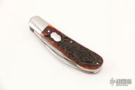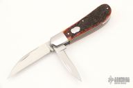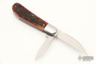 This Swayback from Bill Ruple features two hand rub satin finished blades with nail nicks. The handle has polished stainless steel bolsters, jigged bone covers, stainless steel liners and spring. Half stop on blades. Great blade seating. Comes with zipper case. Has some light scratches, otherwise excellent condition.