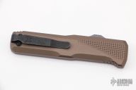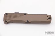 This Phaeton by Benchmade features a DLC drop point blade. The handle is brown aluminum with a tip down black stainless steel clip, left or right reversible. Comes with original box and papers. Excellent condition.
