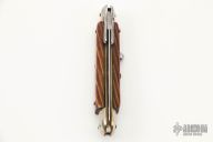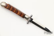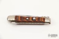 This swing guard auto features a dagger style blade with a single nail nick. The handle has nickel silver bolsters over brass liners and wood scales. Excellent Condition.