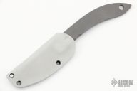 This neck knife by Steve Ryan features a bead blasted blade and handle with notched thumbrest, .155" blade stock and .811" blade depth. Comes with a kydex sheath. Has a couple of light scuffs, otherwise excellent condition.