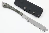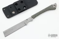 This Custom One Off Knife by Kingdom Armory features a bead blast finished blade with .220" blade stock and .869" blade depth, has a cord wrapped grip. Comes with a kydex sheath. Has a few light scuffs and a oxidation spot on the blade, otherwise good condition.