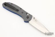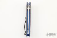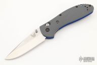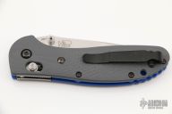 This Griptilian 511-1 by Benchmade features a stonewashed blade with swedge, notched thumbrest and dual thumbstuds. The handle has textured grey G-10 scales with blue G-10 liners, blue anodized barrel spacers. The pocket clip can be reversed for right or left tip up carry. The AXIS lock system makes the knife easy to open and easy to close. Comes with original box and papers. Excellent condition.