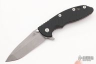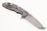 This XM-18 Flipper by Rick Hinderer Knives features a 3.5" stonewashed finished blade, notched thumbrest and flipper, dual thumbstuds. The handle has a black G-10 scale, stonewashed titanium frame, clip can be mounted for tip up or down carry. Nice lockup, seating, and detent. Comes with extra pivot hardware, original box and papers. Excellent condition.