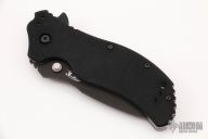 This 0350 liner lock flipper is a Ken Onion design executed by Zero Tolerance and features a recurved spear-point blade with a black finish, stainless steel liners and black G10 scales. It also features the Speed-safe assisted opening system. The black coated steel clip is 4 way adjustable. Excellent condition. #49432. Comes with original box and papers.