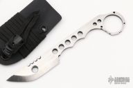 This Draven Industries' K-D4F model features a satin finished scandi ground blade with notched thumbrest, .170" blade stock and .736" blade depth, full tang construciton. Comes with a kydex sheath. Excellent condition.