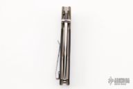 "I believe that in order to make a superior knife you must use superior materials. That is why I work with top grade, high-tech materials. The steels I generally use in my folders and fixed blades are CPM S30v, CPM 154 CM, BG-42, and Damasteel. The handle materials I mostly use range from G-10, Micarta, and carbon fiber to mother of pearl and fossilized mammoth ivory. I exclusively use 6al/4v titanium for the liners in my folders. I mostly make my bolsters from materials such as 6al/4v titanium, damascus, carbon fiber, timascus or mokume. When making Japanese style blades I generally use 1050, 1084, or L6. The handles will usually consist of a phenolic handle covered in stingray skin then wrapped with a nylon cord that has been impregnated with resin to give it maximum strength, toughness, and longevity. I am constantly striving for perfection in creating, for what I feel is one of the highest quality knives on the market today."