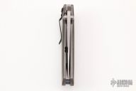 This knife by Kirby Lambert features a satin finished recurve blade with a notched thumbrest and dual thumbstuds. The handle has G10 scales, bead blasted titanium liners, and a tip down stainless steel clip. Nice detent, lockup and blade seating. Includes a padded zippered case. Excellent Condition.
