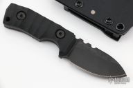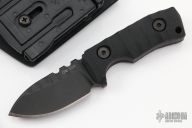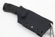 This knife by Raid Ops features a black coated blade with notched thumbrest, .240" blade stock and 1.151" blade depth, full tang construction with black G-10 scales. Includes a kydex sheath with TekLok. Excellent condition.