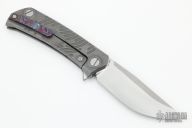 The UMMU! This awesome knife is designed by Aleksey Konygin and features a M390 blade, milled titanium scales & Backspacer, and a ZircuTi pocket clip. Opens by flipper tab on a multi row bearing pivot.  S/N 53. 2/2022.  Includes padded case and COA.  Excellent Condition.