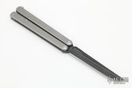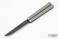 This Scorpius Balisong by Maxace features a black tumbled blade. The handle has bead blasted titanium scales, spacers and t-latch. Has scuffs, otherwise good condition.