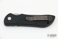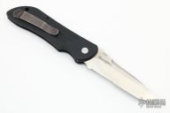 The AutoStryker features a satin finished tanto style blade with partial serrations and a notched thumbrest. The handle features a black aluminum frame with a stainless steel tip up pocket clip. Includes the original box and papers. Light scratches are visible on the frame otherwise the knife is in excellent condition.