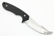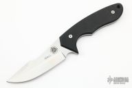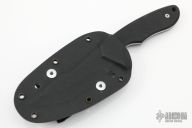 This knife by Jeff Hall is a Joel Pirela Design, it features a satin finished blade with false top edge, .123" blade stock and 1.195" blade depth, full tang construction with black G-10 scales. Comes with kydex sheath. #29 on blade. Excellent condition.