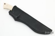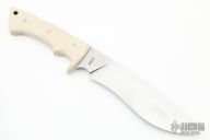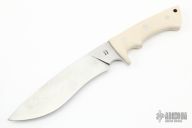 This Camp Knife by Phillip Patton features a hand rub satin finished blade with nice hamon, .211" blade stock and 1.641" blade depth, full tapered tang construction. The handle has ivory paper micarta scales. Comes with 2 black leather sheaths and a zippered case. #1196 on the blade.