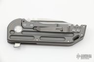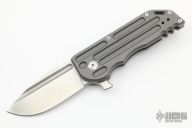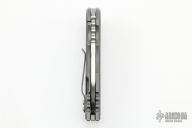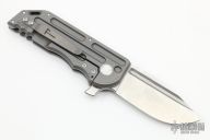 This WarSpear is a collaboration between Jake Hoback Knives and Alphahunter Tactical Design. It features a satin finished blade with fullers, notched thumbrest and flipper. The handle is comprised of a bead blasted titanium frame over a matching titanium floating backspacer, tip up clip and lanyard hole in pommel. Includes allen key set, maker's card, Hoback Knives original box. S/N 30. This was a run of 50. Has some scuffs and scratches, otherwise great condition.