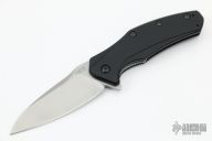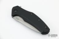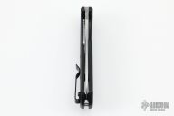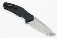 This 0770 Linerlock Flipper (#1753) has a stonewashed drop point blade with notched thumb rest. Handle is black anodized aluminum with stainless steel single liner (lock), and black stainless steel tip up clip (RH/ LH reversible). Comes with original box and papers. Nice action, lockup and blade seating. Has a couple light scratches, otherwise excellent condition.