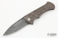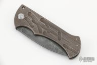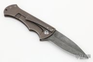 This Tracker Dan Bloodshark by John Gray is a collaboration with Tracker Dan, it features a dark tumble finished blade with large fullers. The handle has a milled and bark finished titanium frame, with matching tip down titanium clip, lanyard hole at the butt. Nice detent, lockup and blade seating. Excellent Condition.