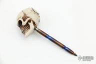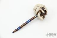 1/4" x 3" heat colored and machined titanium with resin skull handle. Comes with a zippered case. Excelelnt condition.