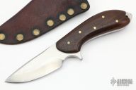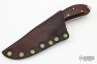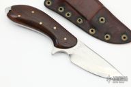 This Talon by Phill Hartsfield features a double ground satin finished blade with .241" blade stock and 1.385" blade depth, full tang construction with wood scales and brass pins. Comes with brown leather covered paper lined metal sheath. Excellent condition.
