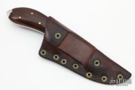 "I have been a fulltime knifemaker since 1977. The metal of my blades is high speed tool steel and during the tempering they are stress relieved three times to bring them to the ultimate in strength with a Rc 60-61. I hand grind and strop each blade to a razor edge - that lasts. Since my blades are designed for use, not display, I do not mirror polish, rather my blades are bead blasted to produce a scratch resistant, non-reflective satin finish. Each handle is shaped in harmony with the hand, no matter how you hold it, it fits. All my designs are full tang." Phill passed away in 2010.