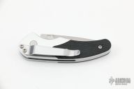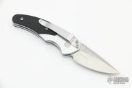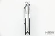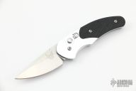 This 3150 Impel Automatic by Benchmade features a drop point blade with swedge. The handle is comprised of an aluminum frame with black G10 overlays. Push button and sliding safety on "A" side of handle The polished steel pocket clip is positioned for tip down carry. Excellent condition. Includes original box and drawstring pouch.