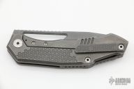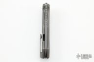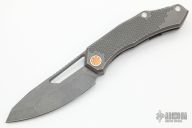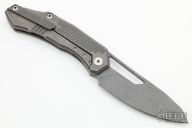This MK1 Warg by DC Munroe features an stonewashed CPM-3V drop point blade with compound grind, step milled thumbhole and notched thumbrest. copper and 18k gold pivot inlays. The handle has a milled and stonewashed titanium polygonal patterned (hexture) frame with matching tip up clip and a backspacer with lanyard hole. Has a stainless steel lockface insert. Comes with original pouch, COA, stickers and padded/zippered case. S/N 0010 and dated May 2016. Knife is in excellent condition.