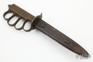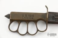 Extremely hard to find. This is a WWI trench knife made by L.F & C. Cast Bronze handle with U.S. 1918 stamped. Blade in good shape for its age. Comes with original scabbard, but the tabs/belt hooks are broken off, rare to have the original sheath all the same. Has some patina and light scratches, otherwise good condition for its age.