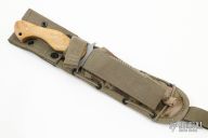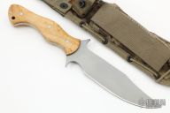 This "On Your Six" fighter with bead blast finished blade and integral double guard, full tang construction, .192" blade stock and 1.484" blade depth. Scales are spalted birdseye maple wood with stainless steel corby bolts. Comes with a Spec-Ops Brand nylon sheath. New from maker.