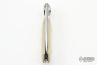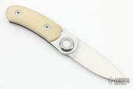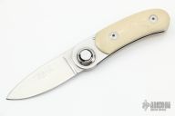 Made by Peterson Precision Engineering and marketed by Gerber, the Paul knife was introduced in 1996 and discontinued in 1997 with a total run of about 23,000. This folder has an axial locking mechanism and a handle scale of ivory paper micarta. This knife was assembled by hand. Has a couple light scratches, otherwise excellent condition in the original box, very nice piece.