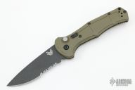An explosive design, bound to take the battlefield by storm. The 9070SBK-1 Claymore is a slender push-button powerhouse, packed full of hidden features and inspired by one of the most notorious directional mines. Incorporating this air-hardening tool steel to Benchmade’s portfolio of premium materials, the Claymore blade has been crafted from CPM-D2 to provide ample toughness and edge retention. Manufactured in the USA, the Claymore has set the standard for closed break strength, making this Benchmade's toughest folder to date. Comes with original box and papers. Excellent condition.