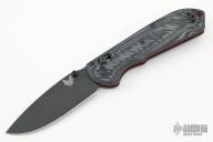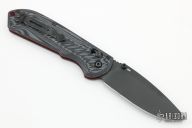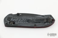 The FREEK, by Benchmade, features a drop point CPM-M4 steel blade with a black finish, dual thumb studs and a notched thumb ramp. The handle is composed of black/grey G-10 and red G-10 liners, black tip up reversible stainless tip pocket clip. Includes original box and papers. Excellent condition.