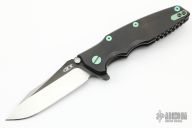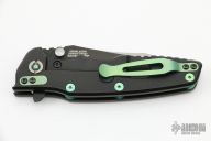 This 0392 from Zero Tolerance is part of their "Factory Custom" series. It features a black blade with swedge, dual thumb studs, notched thumb rest and flipper. The handle has a black titanium frame over anodized barrel spacers, screws and 3 way adjustable pocket clips. Includes original box and COA. S/N of 0143. Excellent Condition.