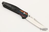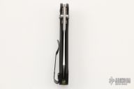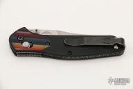 This 940BK Osborne Axis Lock Folder from Benchmade has a satin finished blade with false top edge and dual thumbstuds. The handle features G10 scales with a micarta inlay. Black stainless tip up pocket clip. Nice blade seating and lockup. light scratches are visible on the blade otherwise the knife is in Excellent Condition.