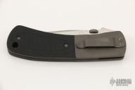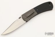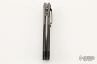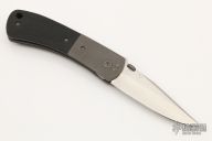 This linerlock by Charles H. Morris features a hand rub satin finished  clip point blade with swedge and single knurled thumb disc. The handle is comprised of bead blast finish titanium dovetail bolsters and micarta scales over titanium liners an black G10 backspacer. Titanium tip down clip. Comes with a Velcro pouch. Has a couple light scuffs, otherwise excellent condition.
