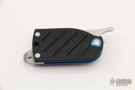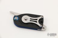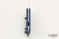 The Aller friction folder knife from Benchmade has a black G-10 handle with a blue base layer and a satin finished CPM-S30V blade. Benchmade teamed up with French knife makers Patrick Famin and Eric Demongivert to produce the Aller, a multi-purpose, travel friendly pocket knife. It has various tools, including a pry tip/screwdriver and bottle opener, that will be invaluable to have with you wherever you go. The pocket clip is also designed to be a money clip, and the handle has a hole that can be used for a lanyard or a key ring. Features: Premium CPM-S30V steel that offers excellent edge retention, reducing the need to sharpen as frequently. Black and blue G-10 handles that provide excellent grip. Custom reversible pocket clip that doubles as a money clip. Excellent condition.