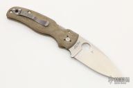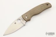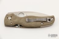 This Shaman Pin by Spyderco features a satin finished spear point blade with notched thumb and finger rests, thumbhole. The handle has green micarta scales, inlaid stainless steel liners and a satin finished stainless steel backspacer, 4-way reversible stainless steel clip, lanyard hole at the butt. Excellent condition. Comes with original box and papers.
