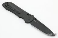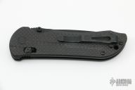 This Stryker by Benchmade features a black finished drop point blade with a plain edge. The handle has milled carbon fiber scales, an axis lock and stainless steel liners with a tip up black stainless steel clip. Nice lockup and blade seating. Has a couple light scuffs on the blade and clip otherwise excellent condition.
