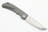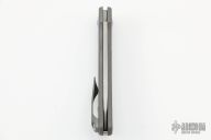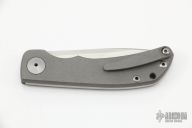 This Impinda by Chris Reeve Knives features a tumbled drop point blade with nail nick. The handle has a bead blasted titanium frame and tip up clip, stainless steel spring. Comes with original box, sheath and papers dated February 24, 2020. Has a light scratch on the frame near the clip. Excellent condition.