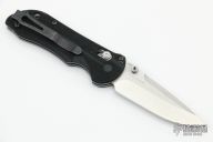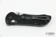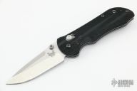 This is a Benchmade mini stryker features a satin drop point blade with dual thumb studs and a notched thumbrest. The handle features black G10 scales over steel liners and a black tip up pocket clip. Includes the original box and papers. Has a couple of scuffs on the frame, and a tiny spot of rust on the edge. Great condition otherwise.