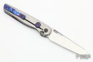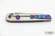 This Cortex by Brown Knives features a clip point stonewashed finish blade with notched thumbrest and flipper. The handle has a milled titanium frame with faux bolsters, backspacer and tip up clip with hidden screws. Has overtravel stop. Rides on bearings, nice detent, lockup and blade seating. Comes with original box and COA #379. Excellent condition.