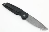 This TR-3 by Pro-Tech Knives features an acid washed Magnacut spear point blade. The handle has a black milled aluminum frame with a black steel pocket clip. Includes the original box and papers. New condition.